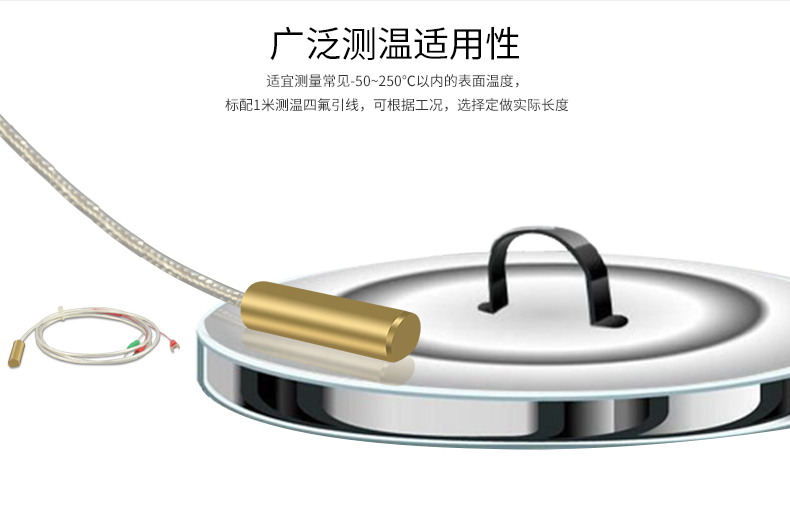 貼片式溫度傳感器主要用于測量物體表面的溫度,貼片式溫度傳感器通過螺釘或其它固定方式將傳感器貼在物體表面,實現較理想的測溫效果。